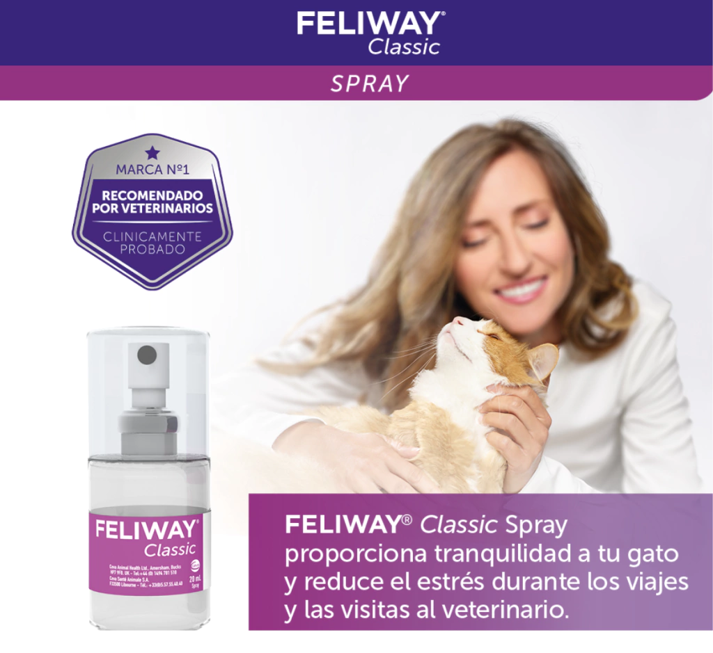 mensajes, FELIWAY® CLASSIC ayuda a que tu gato se adapte mucho mejor a la vida moderna, restablece sus comportamientos de bienestar y evita los signos de estrés que demuestra marcando con orina en spray, arañando verticalmente o escondiéndose.